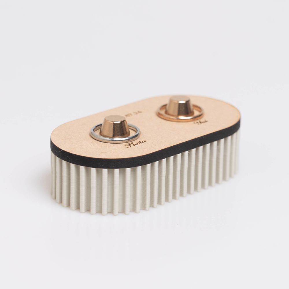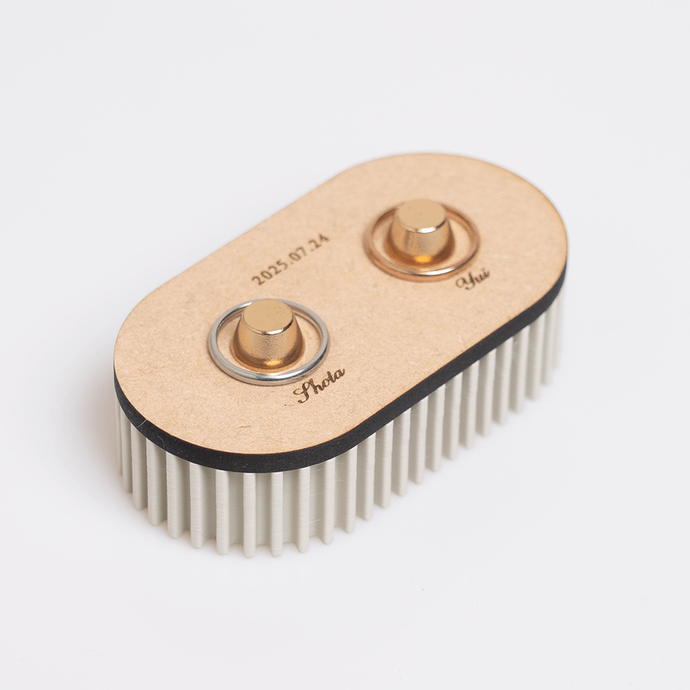 やわらかなプリーツを思わせるフォルムに、リングを置くための真鍮パーツが上品なアクセントを添える、かわいらしいリングピローです。 木製(MDF)、樹脂、真鍮を組み合わせることで、あたたかみとモダンさを兼ね備えたデザインに仕上げました。 結婚式やプロポーズなど、大切な瞬間をやさしく引き立ててくれる特別なアイテムです。 リビングや玄関に飾れば、インテリアとしても穏やかな存在感を放ちます。